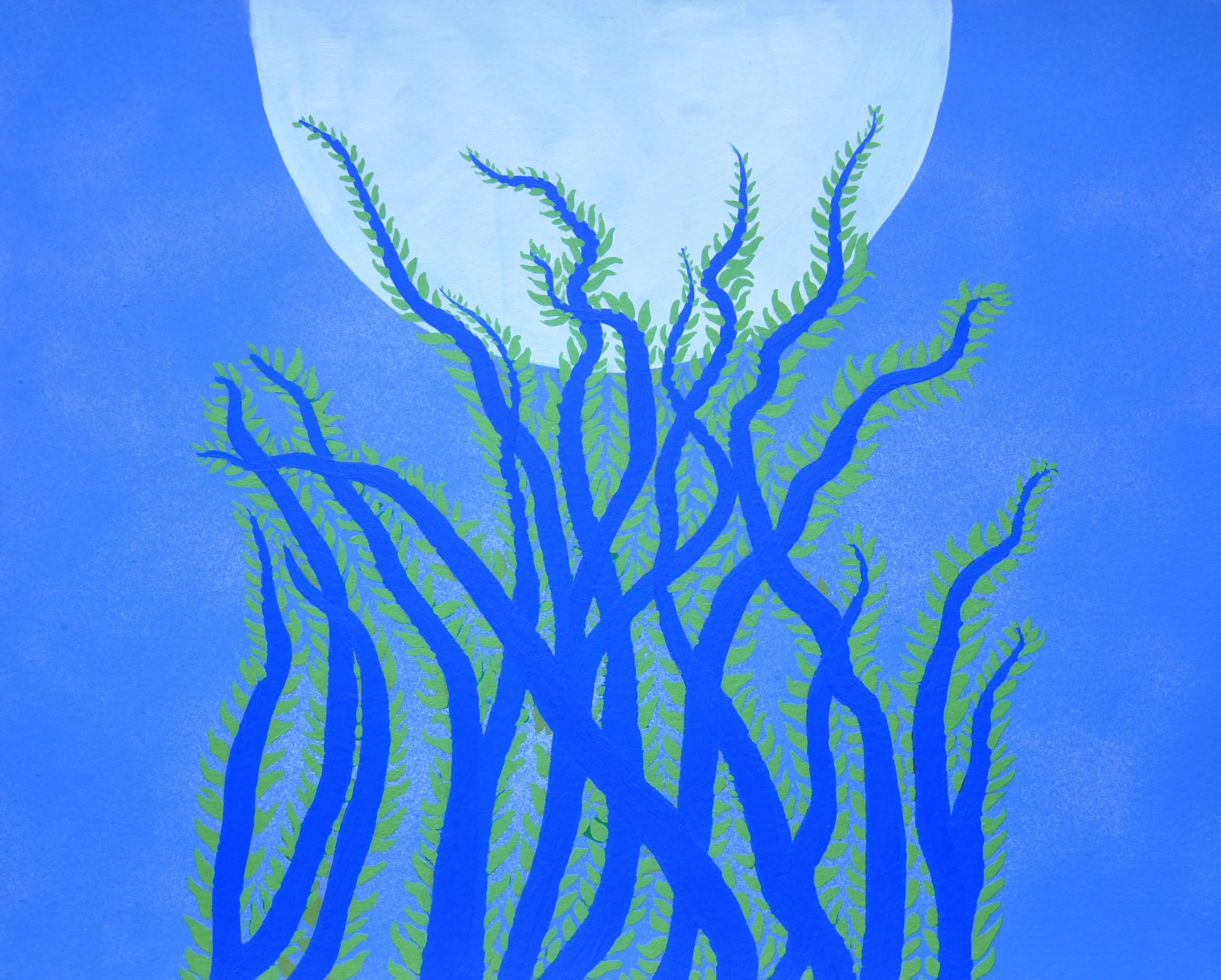 Low Moon, 2022, acrylic, aerosol and colored pencil on paper, 16 x 20 inches